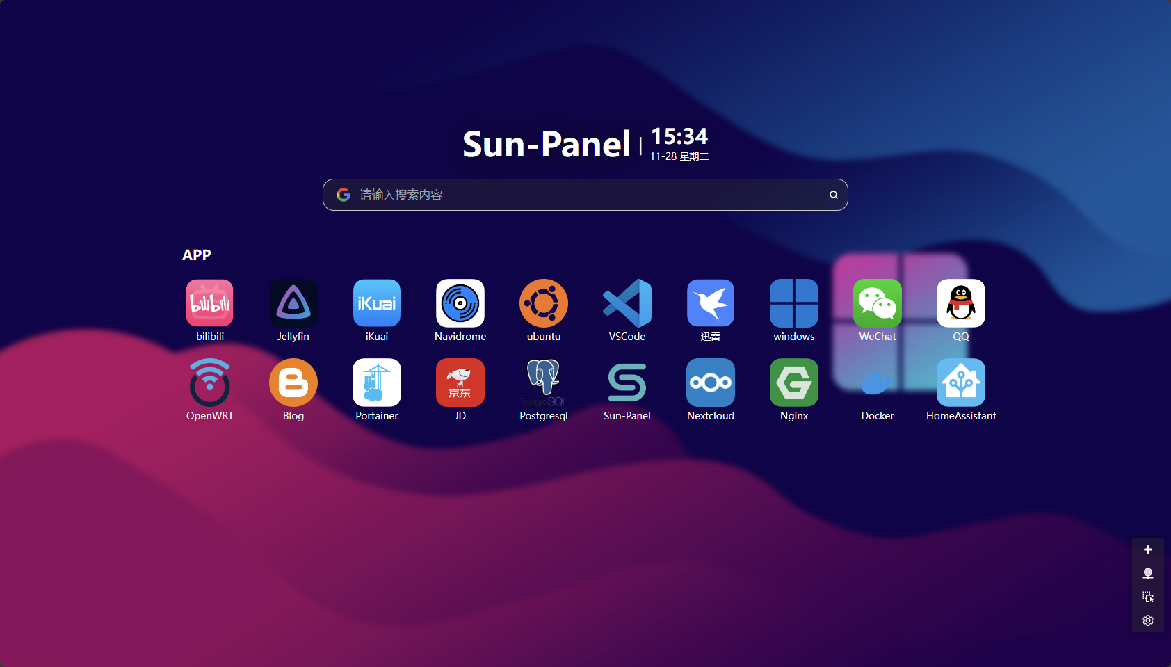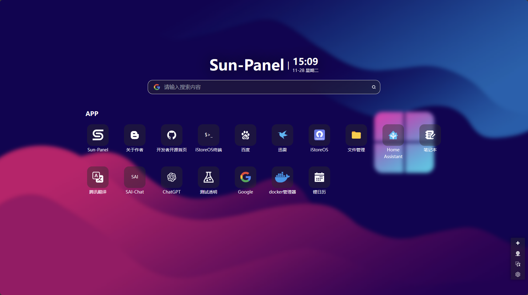 A NAS, server navigation panel, easy Docker manager, Homepage, and browser start page